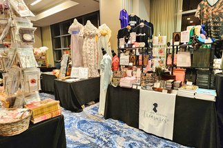 Left: LaTonya's family helps her prepare for the 2024 Cleveland AGM. Middle: LaTonya and her friends attend the Cleveland Regency ball. Right: Jane Austen Treasures' Cleveland vendor table.